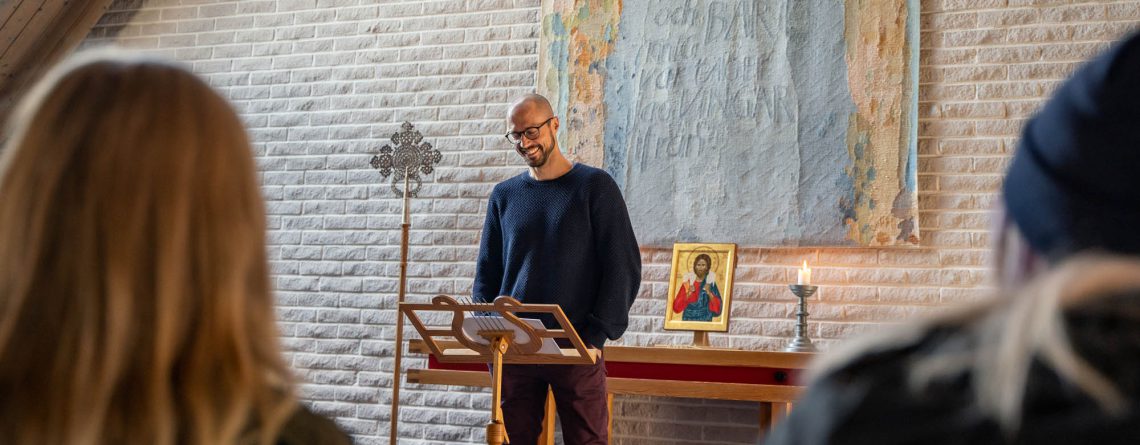 Varannan tisdag (jämna veckor) träffas vi för undervisning. Praktiska och kreativa övningar ges stort utrymme, ihop med efterföljande reflektion. Som följeslagare använder vi oss av Magnus Malms nya bok Schola Caritatis där uttrycket BAS – Bön, Arbete, Studier – fungerar som pedagogisk modell. Vid den första träffen kommer Magnus Malm själv och håller i undervisningen.